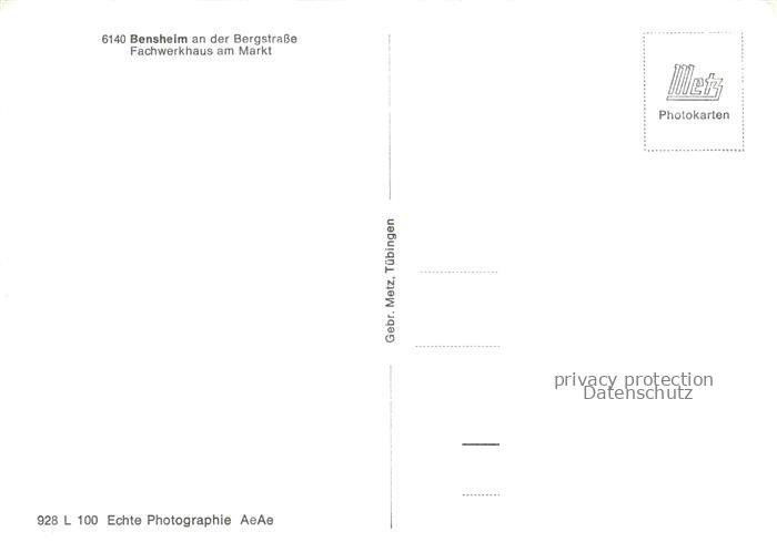 74141597 Bensheim Bergstrasse Hessen Fachwerkhaus am Markt postalisch nicht gelaufen Erhaltung siehe scans [SanaeD93] KatCode: 11110006431002