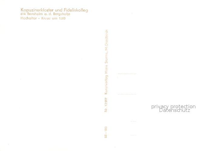 73070682 Bensheim Bergstrasse Kapuzinerkloster und Fideliskolleg Hochaltar Kreuz um 1600 postalisch nicht gelaufen Erhaltung siehe scans [FriedD77] KatCode: 11110006431002