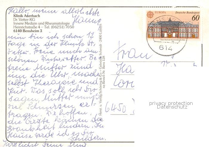 73036427 alte Postkarte Bensheim Bergstrasse Klinik Auerbach postalisch gelaufen Erhaltung siehe scans [KathaD81] KatCode: 11110006431002