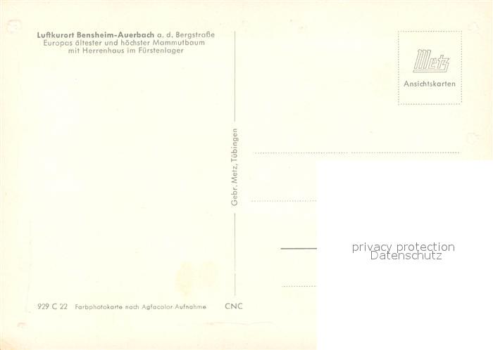 73029699 Bensheim Bergstrasse Mammutbaum mit Herrenhaus im Fuerstenlager postalisch nicht gelaufen Erhaltung siehe scans [WerneD78] KatCode: 11110006431002