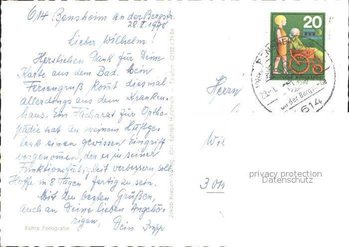 72100793 alte Postkarte Bensheim Bergstrasse Markt Katholische Kirche Hospitalplatz postalisch gelaufen Erhaltung siehe scans KatCode: 11110006431002