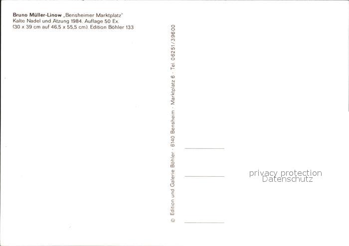72447420 Bensheim Bergstrasse Marktplatz Kuenstlerkarte Bruno Mueller-Linow postalisch nicht gelaufen Erhaltung siehe scans KatCode: 11110006431002