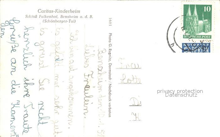 72100484 alte Postkarte Bensheim Bergstrasse Schloss Falkenhof postalisch gelaufen Erhaltung siehe scans KatCode: 11110006431002