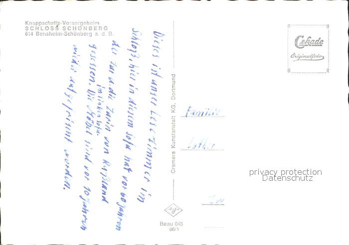 72100724 Bensheim Bergstrasse Schloss Schoenberg postalisch nicht gelaufen Erhaltung siehe scans KatCode: 11110006431002