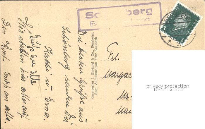 72098560 alte Postkarte Bensheim Bergstrasse Schoenberg postalisch gelaufen Erhaltung siehe scans KatCode: 11110006431002