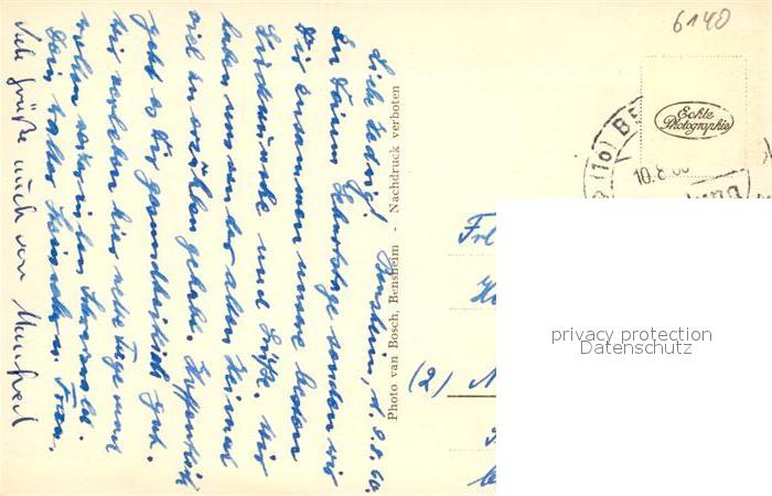 43350505 alte Postkarte Bensheim Bergstrasse Stadtpanorama mit Darmstaedter Strasse Kirche postalisch gelaufen Erhaltung siehe scans [FriedD77] KatCode: 11110006431002