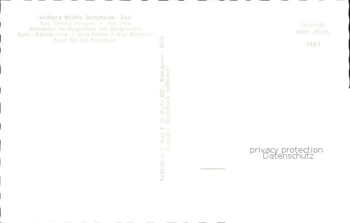 72200208 Bensheim Bergstrasse Velters Muehle Terrassen-Restaurant postalisch nicht gelaufen Erhaltung siehe scans KatCode: 11110006431002