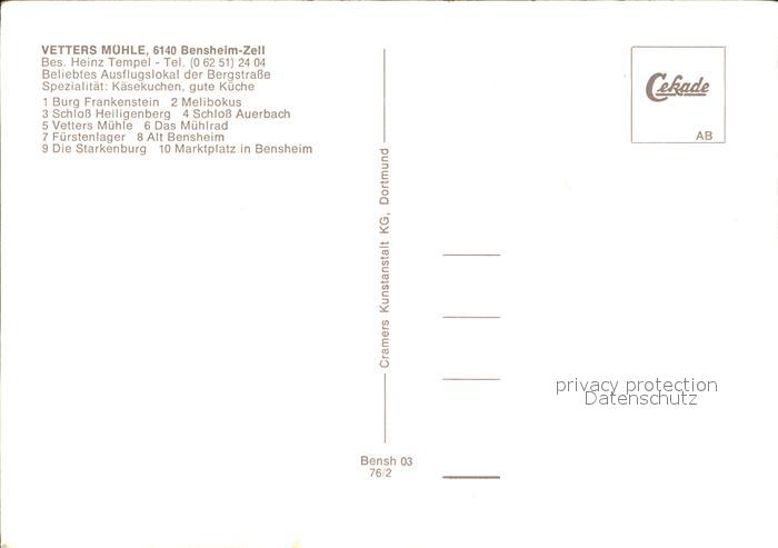 72419257 Bensheim Bergstrasse Vetters Muehle Burg Frankenstein Schloss Heiligenberg postalisch nicht gelaufen Erhaltung siehe scans KatCode: 11110006431002