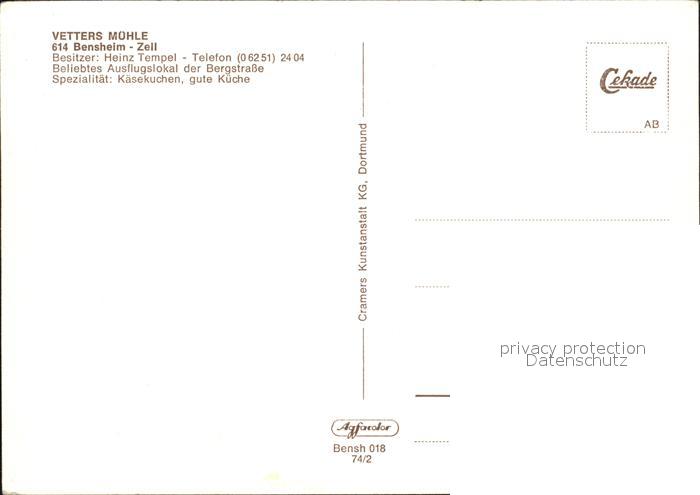 72419259 Bensheim Bergstrasse Vetters Muehle postalisch nicht gelaufen Erhaltung siehe scans KatCode: 11110006431002