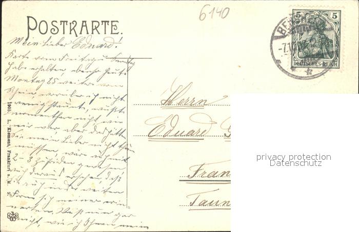 32101201 alte Postkarte Bensheim Bergstrasse Villenviertel am Kirchberg postalisch gelaufen Erhaltung siehe scans KatCode: 11110006431002
