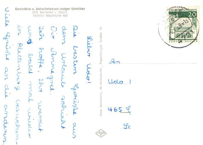 73869869 alte Postkarte Benteler Langenberg Kirche Gaststaette Ludger Schnitker Monument Kanal postalisch gelaufen Erhaltung siehe scans [FriedD77] KatCode: 11110005754024