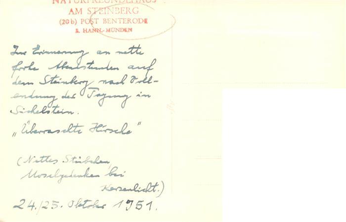 73971137 Benterode Staufenberg Niedersachsen Naturfreundehaus am Steinberg postalisch nicht gelaufen Erhaltung siehe scans [FriedD77] KatCode: 11110003152026