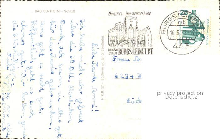 72249424 alte Postkarte Bentheim Bad Schloss postalisch gelaufen Erhaltung siehe scans KatCode: 11110003456001