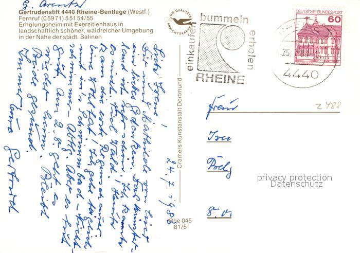 73125270 alte Postkarte Bentlage Gertrudenstift postalisch gelaufen Erhaltung siehe scans [NatalD47] KatCode: 11110005566076