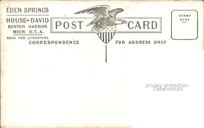 31735449 Benton Harbor Eden Springs House of David Eagle postalisch nicht gelaufen Erhaltung siehe scans KatCode: 14140240000000