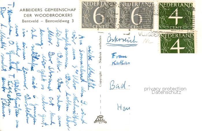 old postcard Bentveld Arbeiders Gemeenschap der Woodbrookers postalisch gelaufen Erhaltung siehe scans [WerneD78]