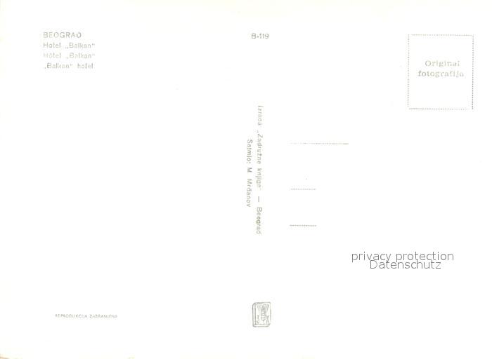 13330023 Beograd Belgrad Hotel Balkan postalisch nicht gelaufen Erhaltung siehe scans [KathaD81] Kath Katcode 11480