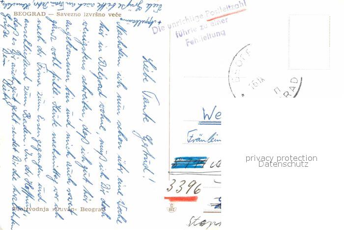 old postcard Beograd Belgrad Savezno izvrsno vece postalisch gelaufen Erhaltung siehe scans [WerneD78]