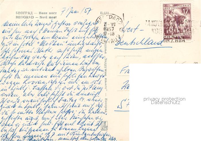 73804226 Beograd Belgrad Serbia Novi most postalisch gelaufen Erhaltung siehe scans [FriedD77] old postcard Frie Katcode 11480