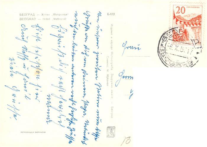 old postcard Beograd Belgrad Serbija Hotel Metropol postalisch gelaufen Erhaltung siehe scans [FriedD77]