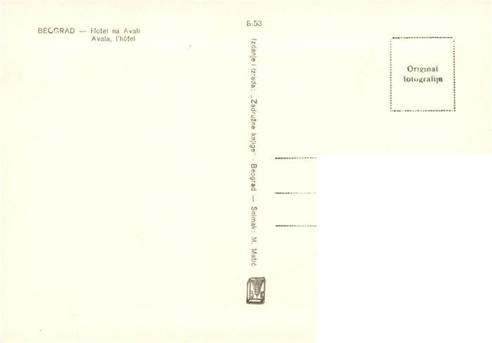 73900363 Beograd Belgrad Serbija Hotel na Avali postalisch nicht gelaufen Erhaltung siehe scans [FriedD77] Frie Katcode 11480