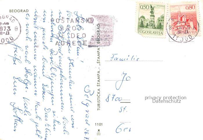74005782 old postcard Beograd Belgrad Serbija Stadtansichten Denkmal Hochhaeuser Zentrum postalisch gelaufen Erhaltung siehe scans [FriedD77] KatCode: 11480