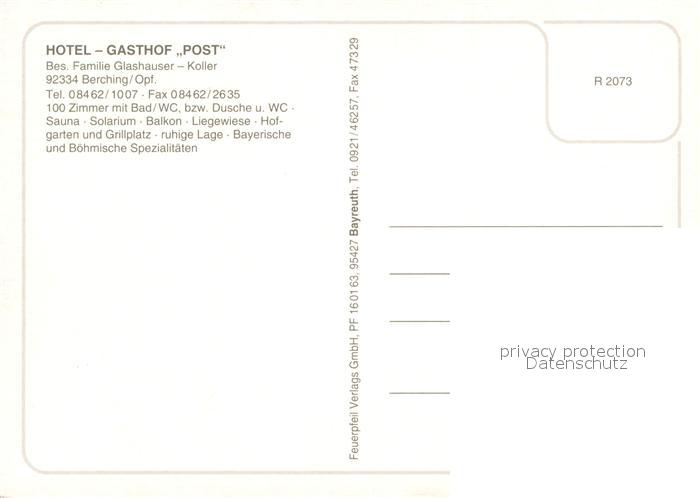73645549 Berching Hotel Gasthof Post Gastraeume postalisch nicht gelaufen Erhaltung siehe scans [WerneD78] KatCode: 11110009373112