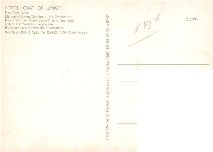 73893489 Berching Hotel Gasthof Post Gastraeume postalisch nicht gelaufen Erhaltung siehe scans [WerneD78] KatCode: 11110009373112