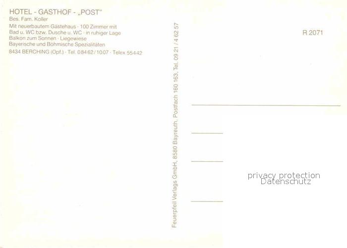 72673786 Berching Hotel Post postalisch nicht gelaufen Erhaltung siehe scans [AndreD76] KatCode: 11110009373112