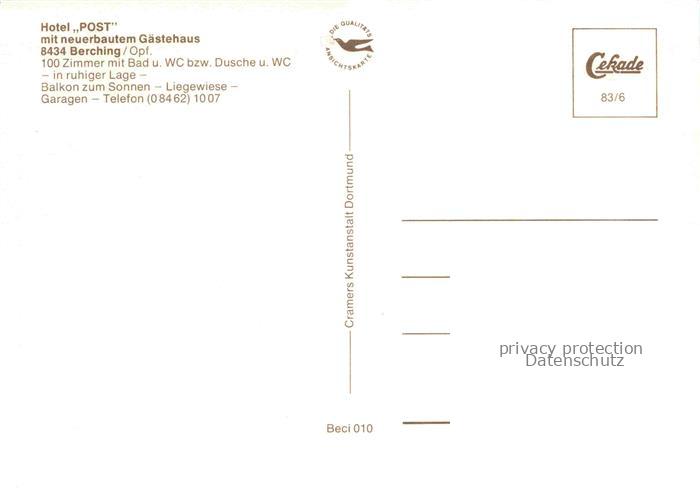 74039704 Berching Hotel Post Gastraeume postalisch nicht gelaufen Erhaltung siehe scans [WerneD78] KatCode: 11110009373112