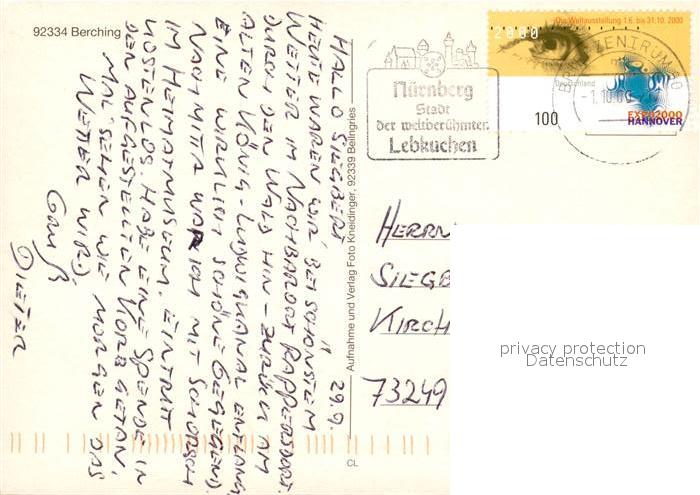 73216114 alte Postkarte Berching Stadtpanorama postalisch gelaufen Erhaltung siehe scans [FriedD77] KatCode: 11110009373112