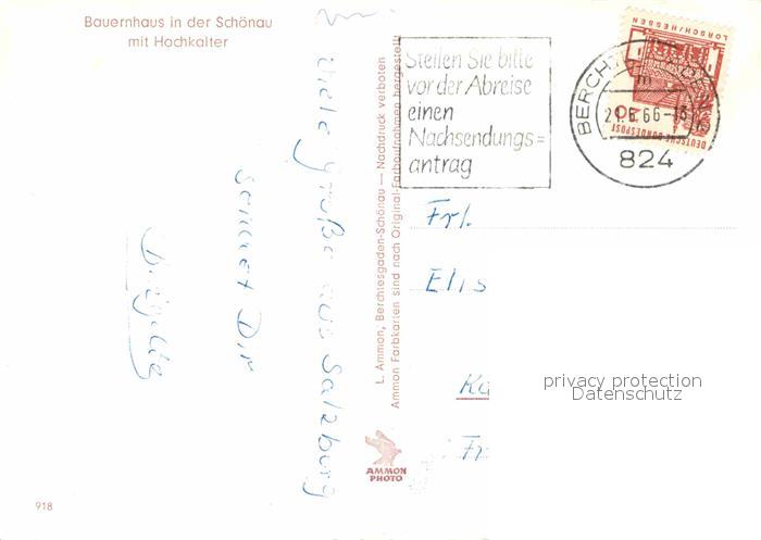 72902593 alte Postkarte Berchtesgaden Bauernhaus in der Schoenau mit Hochkalter Berchtesgadener Alpen postalisch gelaufen Erhaltung siehe scans [FriedD77] KatCode: 11110009172116