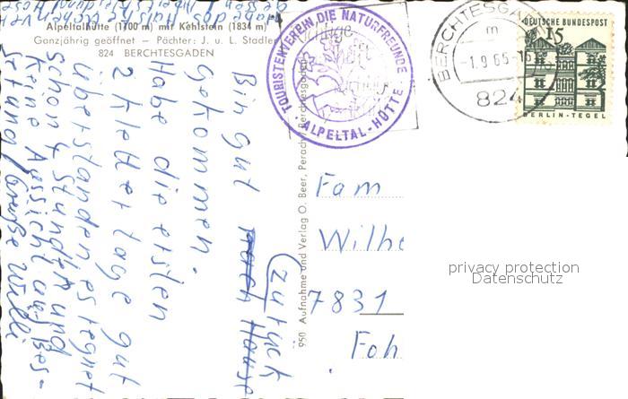 71902978 alte Postkarte BERCHTESGADEN Bayern Alpeltalhuette mit Kehlstein postalisch gelaufen Erhaltung siehe scans KatCode: 11110009172116