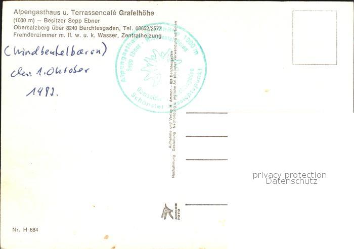 72568737 BERCHTESGADEN Bayern Alpengasthaus Terrassencafe Grafelhoehe Obersalzberg postalisch nicht gelaufen Erhaltung siehe scans [KathaD79] KatCode: 11110009172116