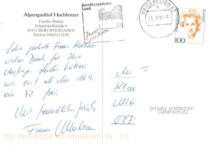 73649556 BERCHTESGADEN Bayern Alpengasthof Hochlenzer Terrasse Alpenblick postalisch gelaufen Erhaltung siehe scans [FriedD77] alte Postkarte Frie Katcode 11110009172116