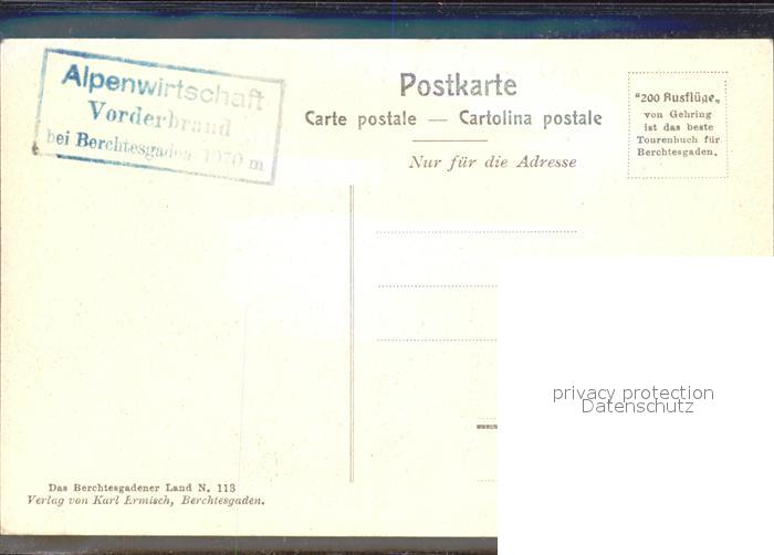 72142184 BERCHTESGADEN Bayern Alpenwirtschaft Vorderbrand postalisch nicht gelaufen Erhaltung siehe scans KatCode: 11110009172116