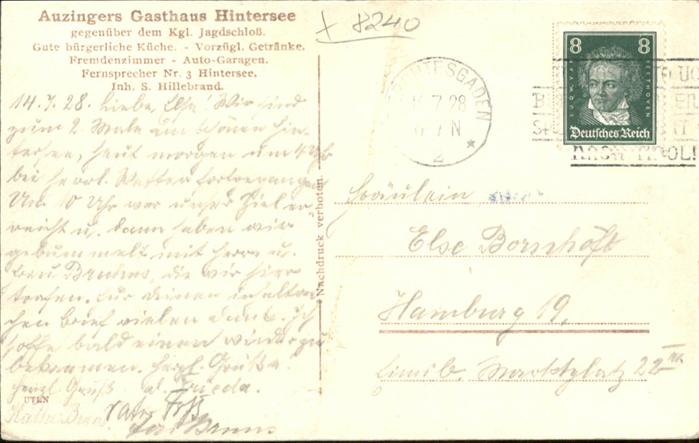 40939524 BERCHTESGADEN Bayern Auzingers Gasthaus Hintersee postalisch gelaufen Alte Ansichtskarte Postkarte alte Postkarte Katcode 11110009172116