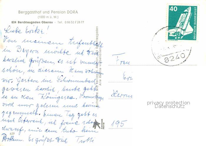 72839847 alte Postkarte BERCHTESGADEN Bayern Berggasthof Pension Dora postalisch gelaufen Erhaltung siehe scans [LiesaD40] KatCode: 11110009172116