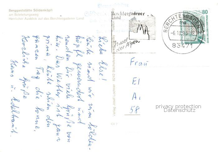 73859861 BERCHTESGADEN Bayern Berggaststätte Söldenköpfl Terrasse postalisch gelaufen Erhaltung siehe scans [WerneD78] alte Postkarte Wern Katcode 11110009172116