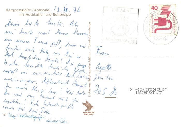 73650975 BERCHTESGADEN Bayern Berggaststaette Graflhoehe mit Hochkalter und Reiteralpe postalisch gelaufen Erhaltung siehe scans [WerneD78] alte Postkarte Wern Katcode 11110009172116
