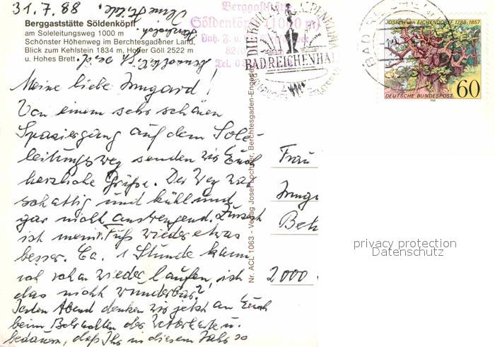 72814451 alte Postkarte BERCHTESGADEN Bayern Berggaststaette Soeldenkoepfl Terrasse postalisch gelaufen Erhaltung siehe scans [WerneD78] KatCode: 11110009172116
