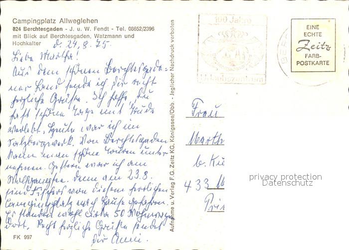 72035491 alte Postkarte BERCHTESGADEN Bayern Campingplatz Allweglehen Schwimmbad Watzmann Hochkalter Alpen postalisch gelaufen Erhaltung siehe scans KatCode: 11110009172116