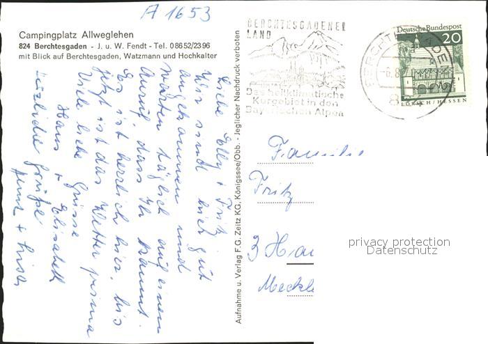 72034397 alte Postkarte BERCHTESGADEN Bayern Campingplatz Allweglehen Watzmann Hochkalter postalisch gelaufen Erhaltung siehe scans KatCode: 11110009172116