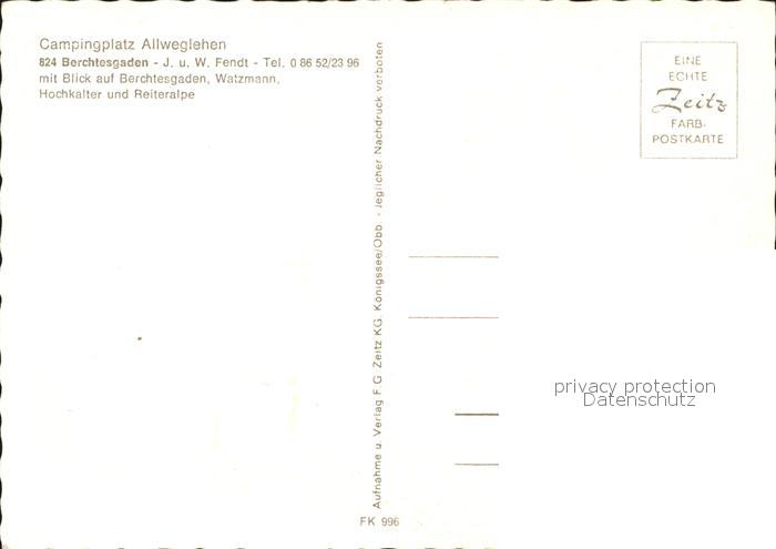 71974236 BERCHTESGADEN Bayern Campingplatz Allweglehen postalisch nicht gelaufen Erhaltung siehe scans KatCode: 11110009172116