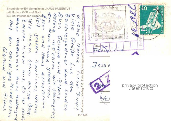 72841661 alte Postkarte BERCHTESGADEN Bayern Eisenbahner Erholungsheim Haus Hubertus mit Hohem Goell und Brett postalisch gelaufen Erhaltung siehe scans [LiesaD40] KatCode: 11110009172116