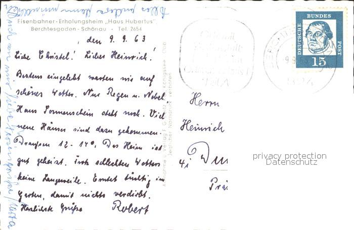 72199092 alte Postkarte BERCHTESGADEN Bayern Eisenbahner- Erholungsheim Haus Hubertus postalisch gelaufen Erhaltung siehe scans KatCode: 11110009172116
