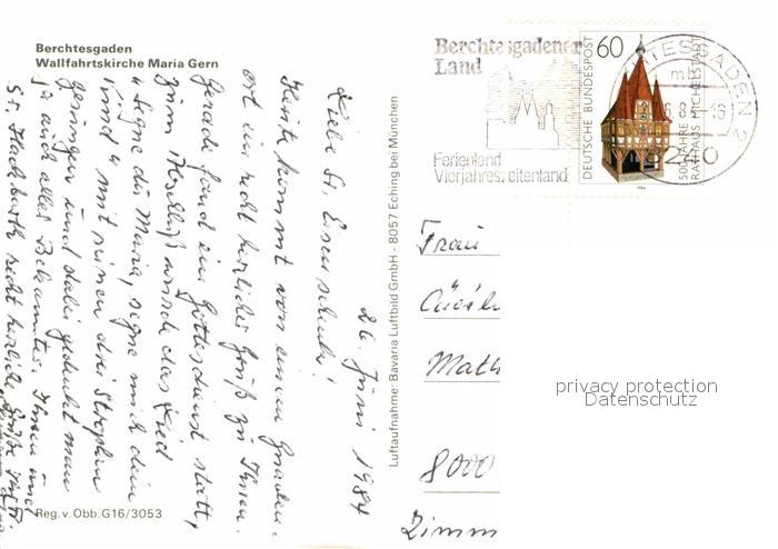 72754063 alte Postkarte BERCHTESGADEN Bayern Fliegeraufnahme Wallfahrtskirche Maria Gern postalisch gelaufen Erhaltung siehe scans [LiesaD40] KatCode: 11110009172116