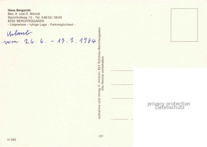 74026276 BERCHTESGADEN Bayern Gaestehaus Pension Haus Bergsicht postalisch nicht gelaufen Erhaltung siehe scans [FriedD77] Frie Katcode 11110009172116