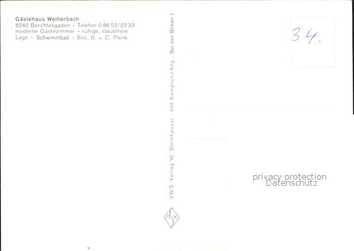 72112638 BERCHTESGADEN Bayern Gaestehaus Weihersbach postalisch nicht gelaufen Erhaltung siehe scans KatCode: 11110009172116