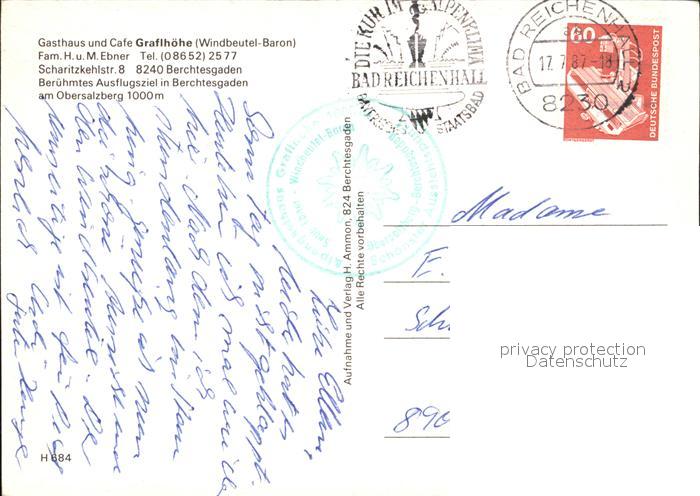 72600473 alte Postkarte BERCHTESGADEN Bayern Gasthaus Cafe Graflhoehe Windbeutel Baron Alpenpanorama postalisch gelaufen Erhaltung siehe scans [FriedD77] KatCode: 11110009172116